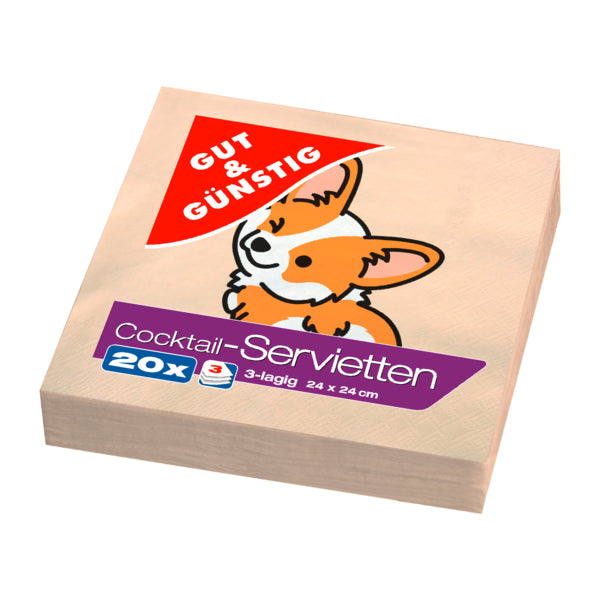 GUT&GÜNSTIG Cocktailservietten Hund mit Herz 3-lagig 24x24cm 20ST
