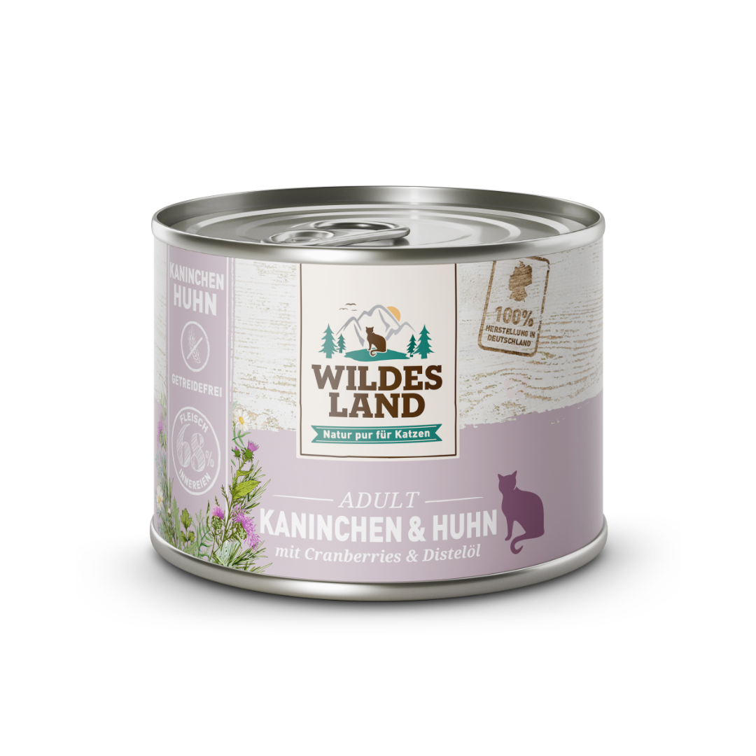 Wildes Land Katze Nassfutter Kaninchen und Huhn mit Distelöl 200g